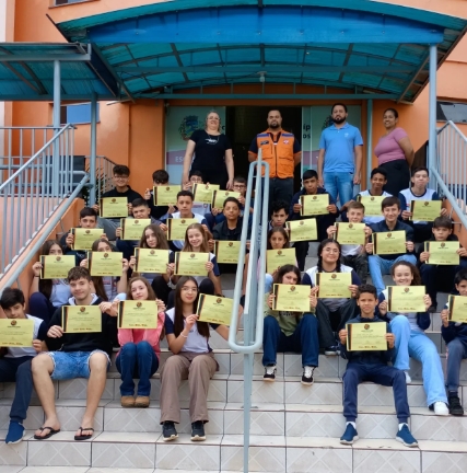 Alunos do 7º e 8º ano recebem certificados da Defesa Civil em Faxinal dos Guedes e na Escola Santa Terezinha