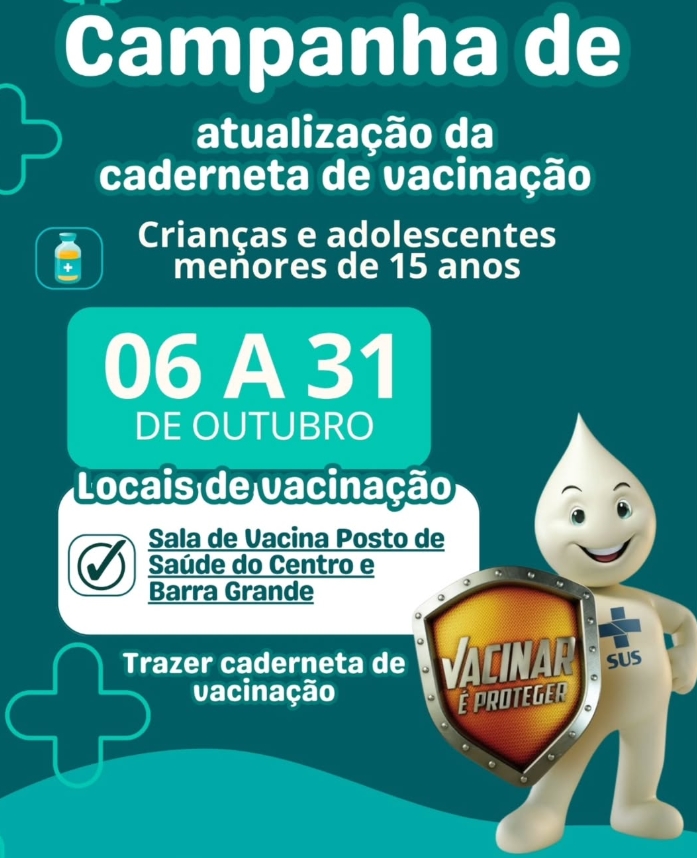 Durante esse período, crianças e adolescentes com menos de 15 anos devem comparecer à Sala de Vacina do Posto de Saúde do Centro ou de Barra Grande para verificar e atualizar suas vacinas.