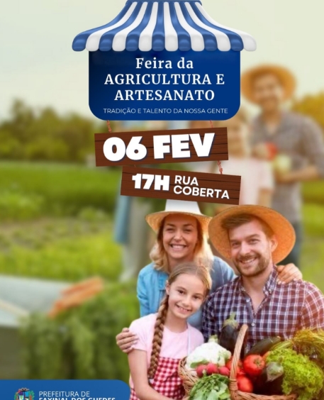 A Prefeitura de Faxinal dos Guedes promove nesta quinta-feira, dia 6 de fevereiro, a Feira da Agricultura e Artesanato, um evento voltado à valorização da produção local, da cultura e das tradições do município. A feira será realizada a partir das 17h, na Rua Coberta, reunindo agricultores, artesãos e a comunidade em geral.